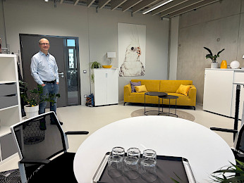 Auch unserem Geschäftsführer Lars Ehrler gefallen die neuen Räumlichkeiten sichtlich.