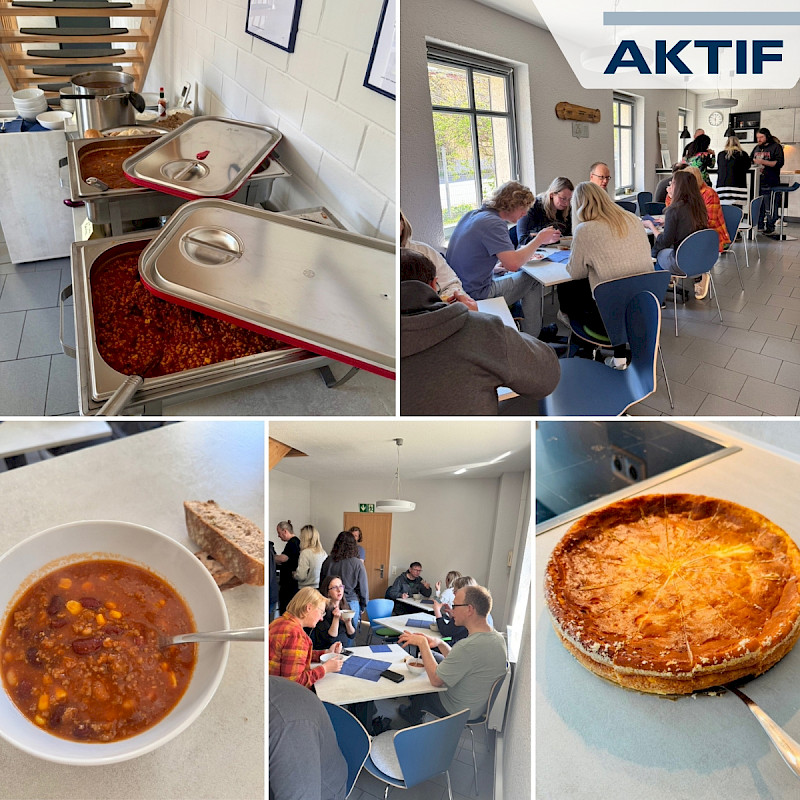 An diesem frühlingshaften Mittwoch war mal wieder Zeit für einen AKTIF-Lunch. Dieser ließ kulinarisch keine Wünsche offen: Chili con Carne, Chili sin Carne, dazu eine Portion Borschtsch als nachträgliche Einstandsrunde einer Kollegin und zum krönenden Abschluss selbstgemachter Käsekuchen. Heute ging sicher niemand hungrig nach Hause.